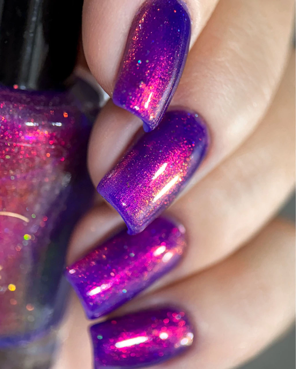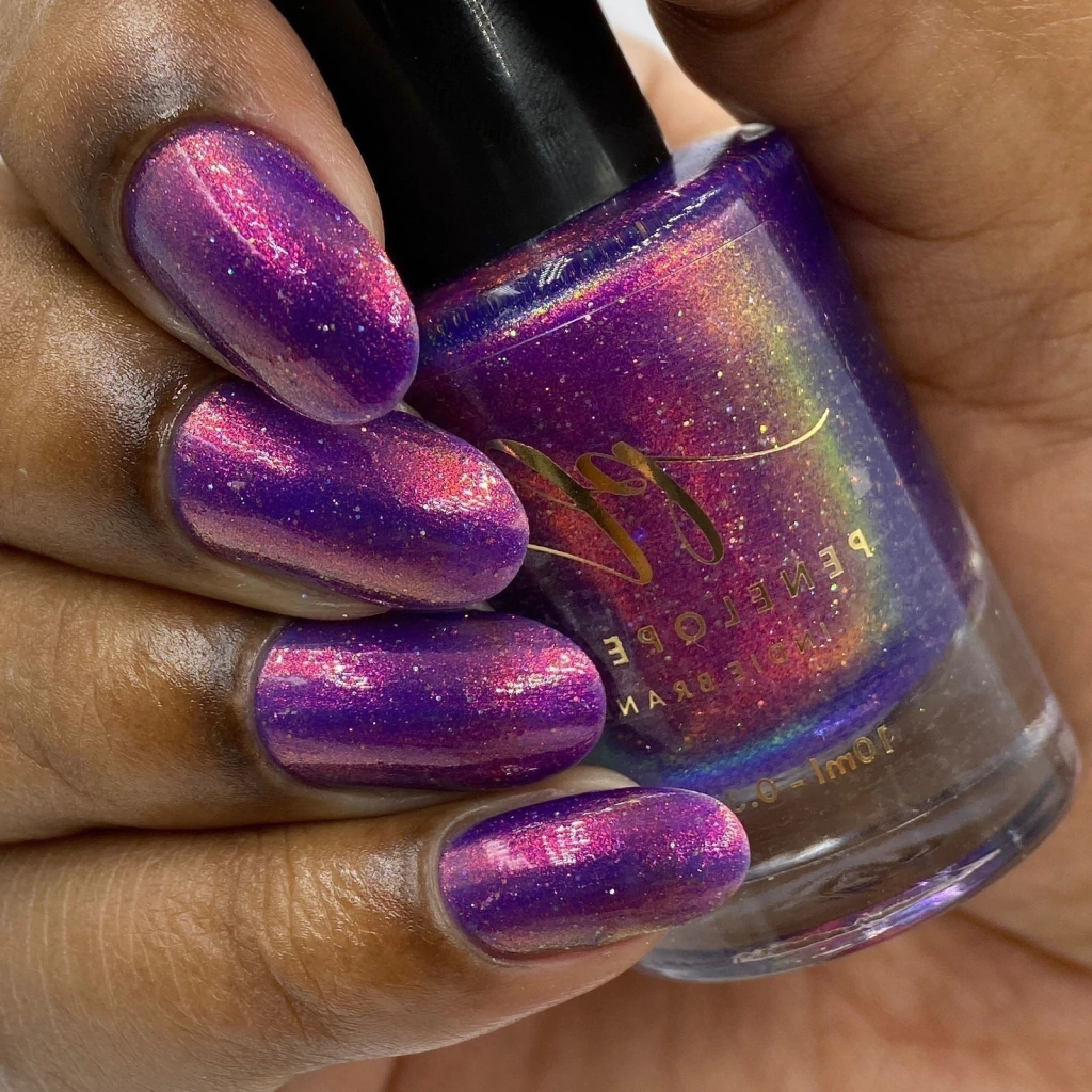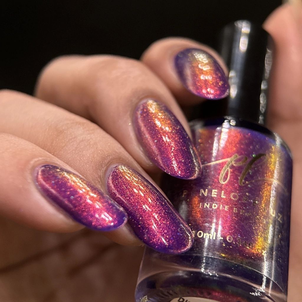 Base roxa vibrante com aurora laranja/dourado. 10ml.