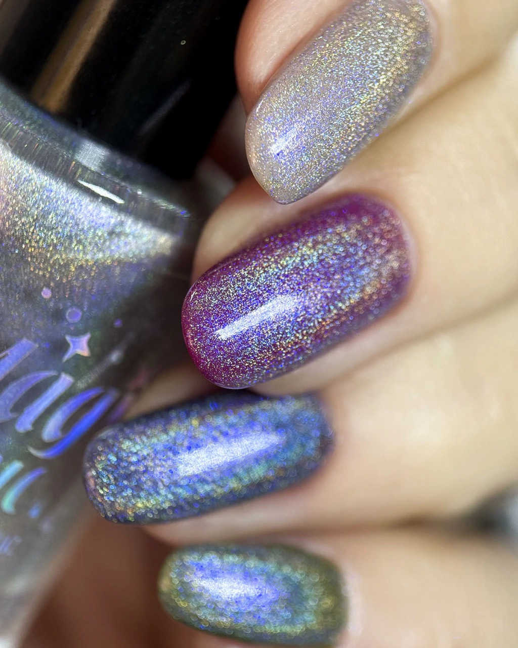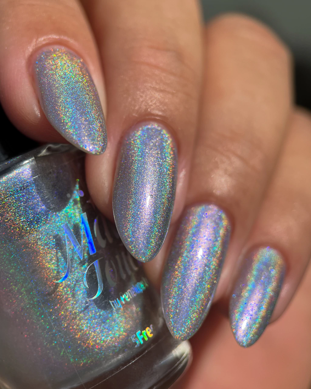 O esmalte Moon Halo faz parte da coleção Holo Heaven e é um topper, que pode ser usado sobre outros esmaltes ou sozinho com 3 camadas.