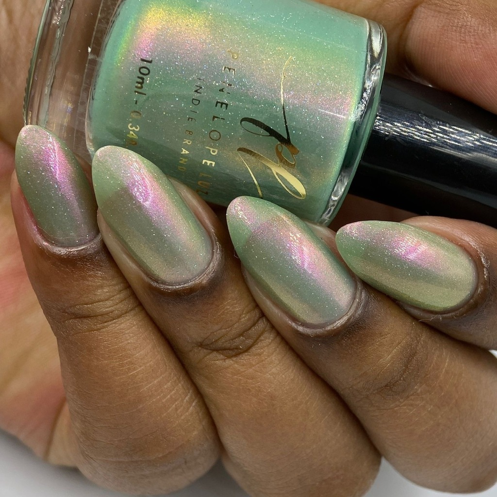 Verde menta com aurora rosa/dourado. 10ml.
