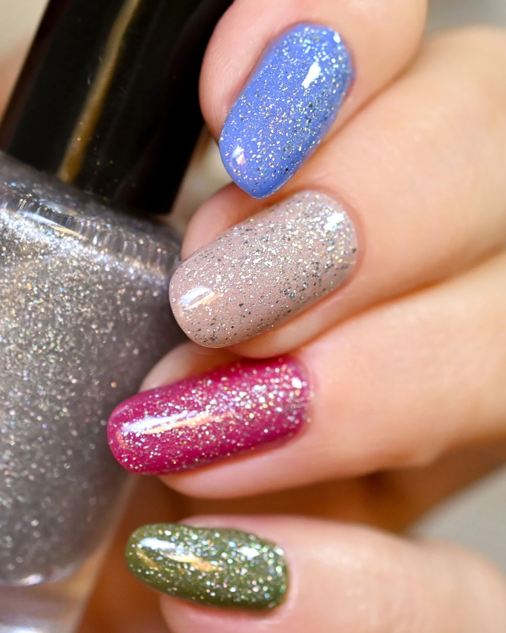 O esmalte Prismatic Glow faz parte da coleção Holo Heaven e é um topper, que pode ser usado sobre outros esmaltes ou sozinho com 3 camadas.