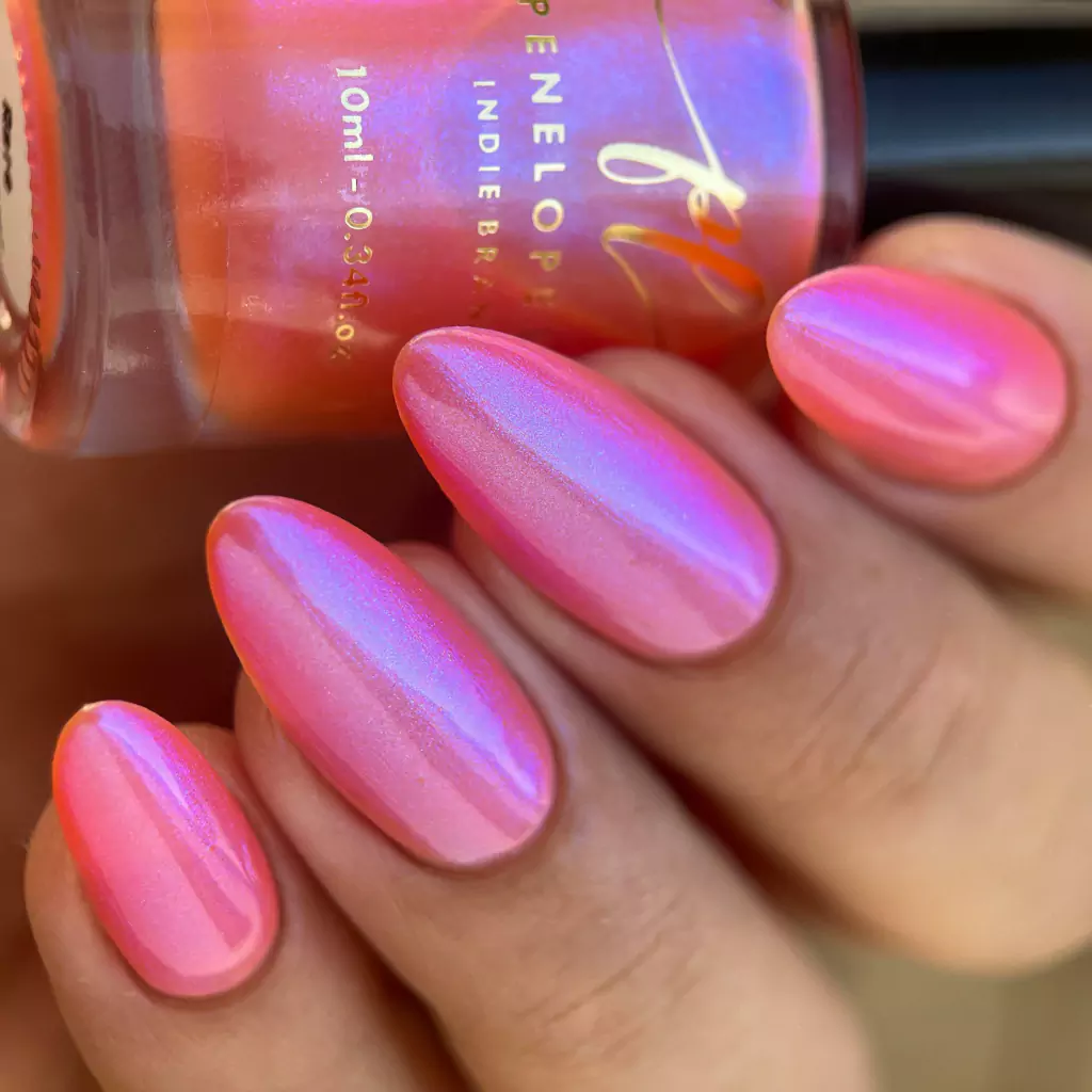 Base coral com intenso brilho de aurora azul/roxo. 10ml.