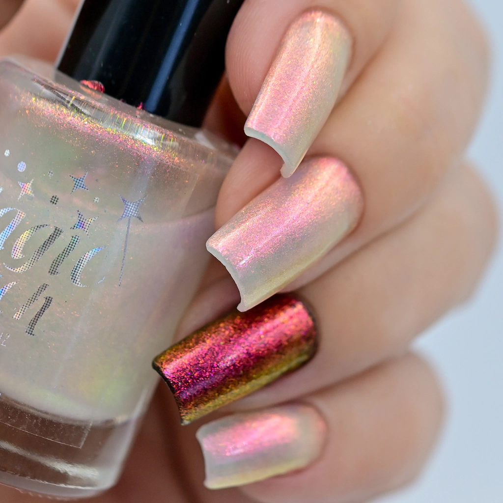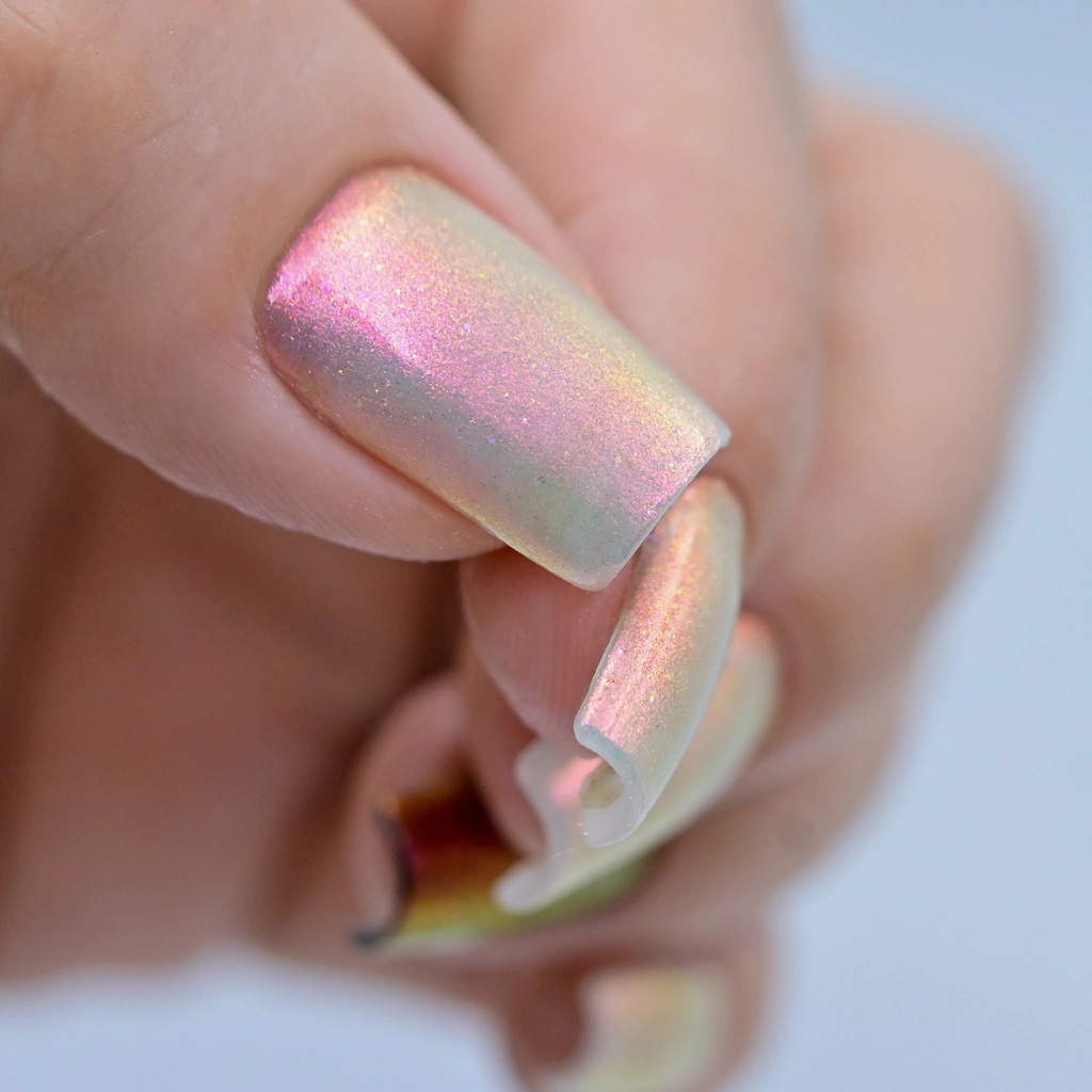 Base transparente com pigmento aurora rosado que vai para o cobre e o dourado. 10ml.