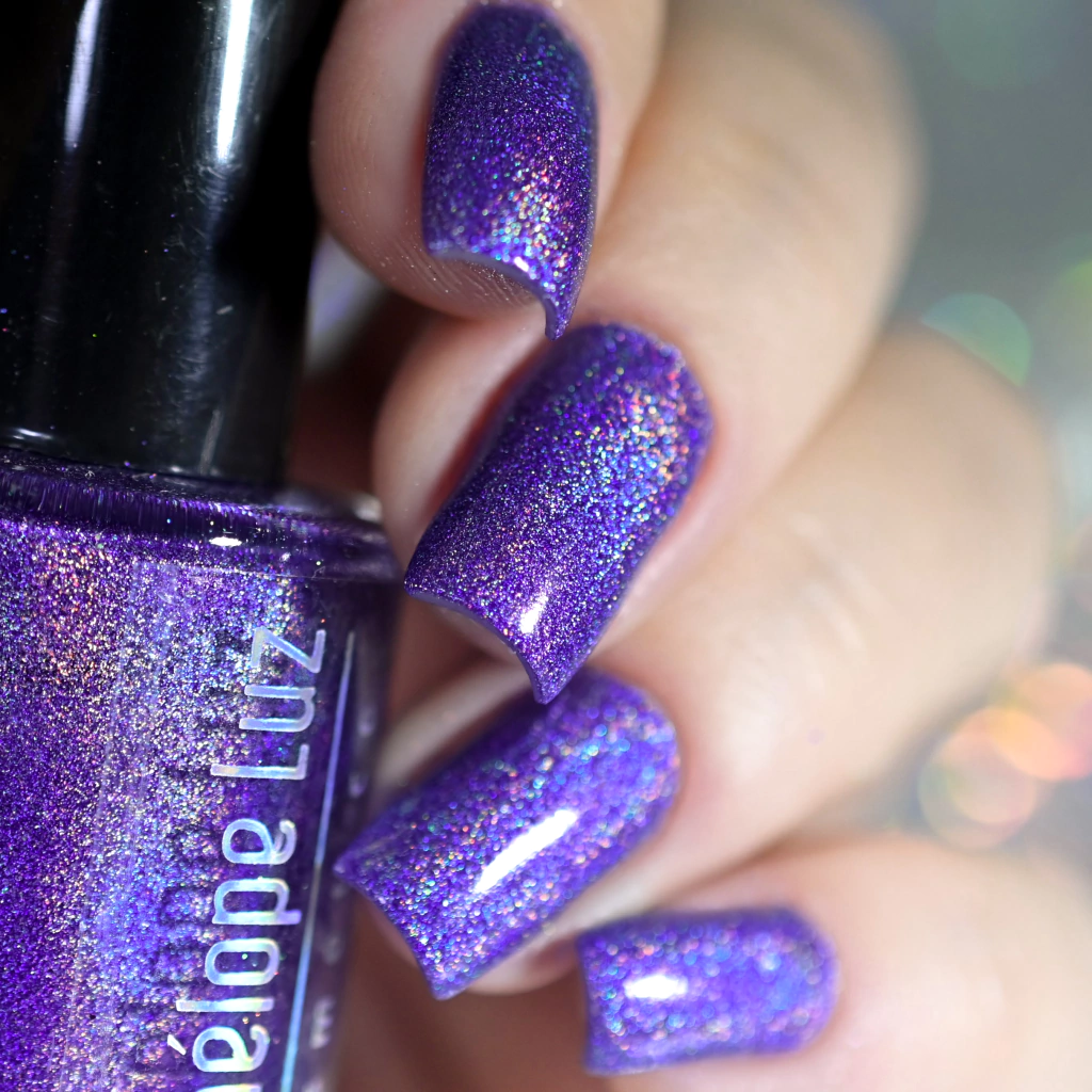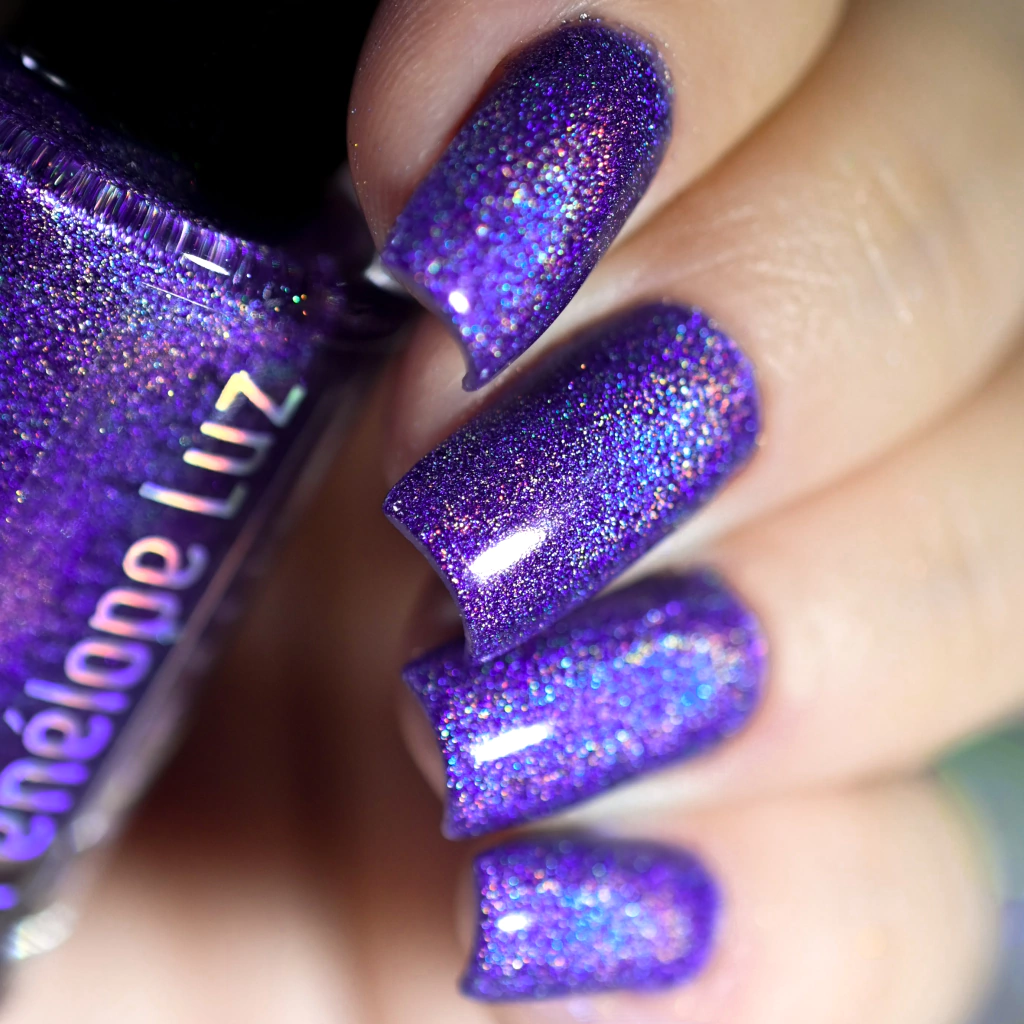 Quando usarem ele, se quiserem manter o efeito holo bem forte, evitem extra-brilho. Mas se quiserem ele ainda mais vibrante, podem se jogar no extra brilho! Esse é daqueles pigmentos que alteram com extra brilho. O bom é que temos duas versões maravilhosas no mesmo esmaltes